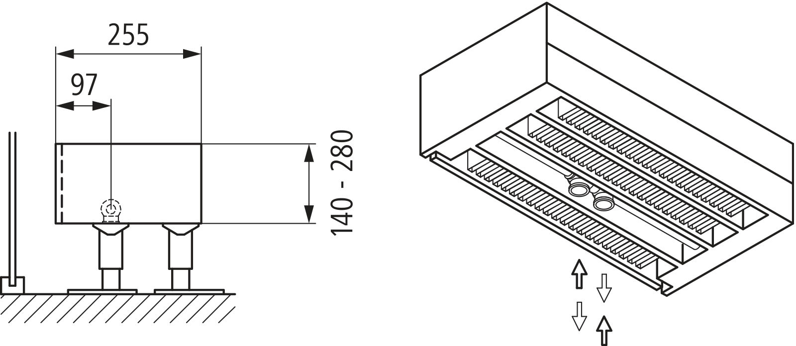 Specjalna osłona przeciw wypromieniowaniu ciepła montowana jest na tylnej ścianie konwektora. Uniemożliwia ona promieniowanie ciepłego powietrza w stronę przeszklonej powierzchni i dzięki temu zmniejsza stratę ciepła aż do 80%.