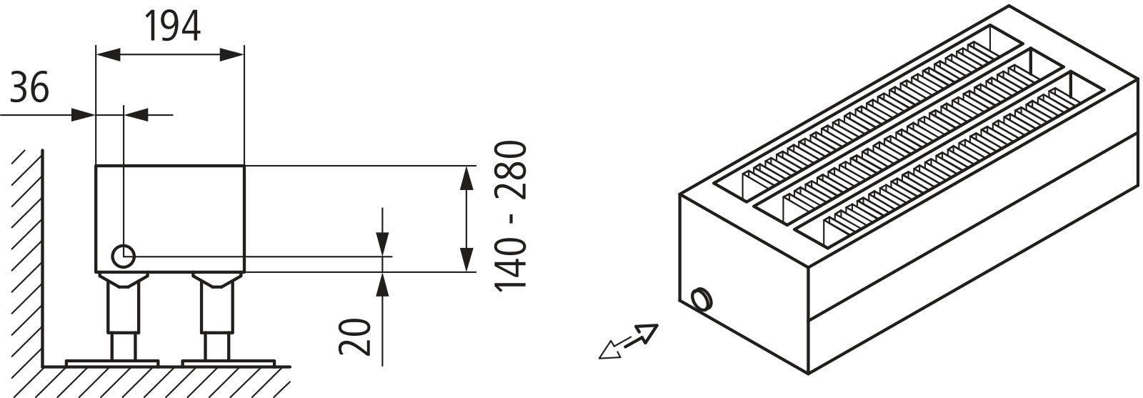 Konwektor Kermi L-Konvektor Typ43 BH210x194x2000mm QN3280, weiß, 6bar, m. Abd., AB Uni.