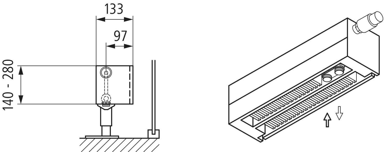 Typ KSV to elegancki konwektor zaworowy z wbudowanym ekranem przeciw wypromieniowaniu ciepła – skuteczny sposób na zminimalizowanie strat ciepła spowodowanych dużymi powierzchniami oszklonymi.