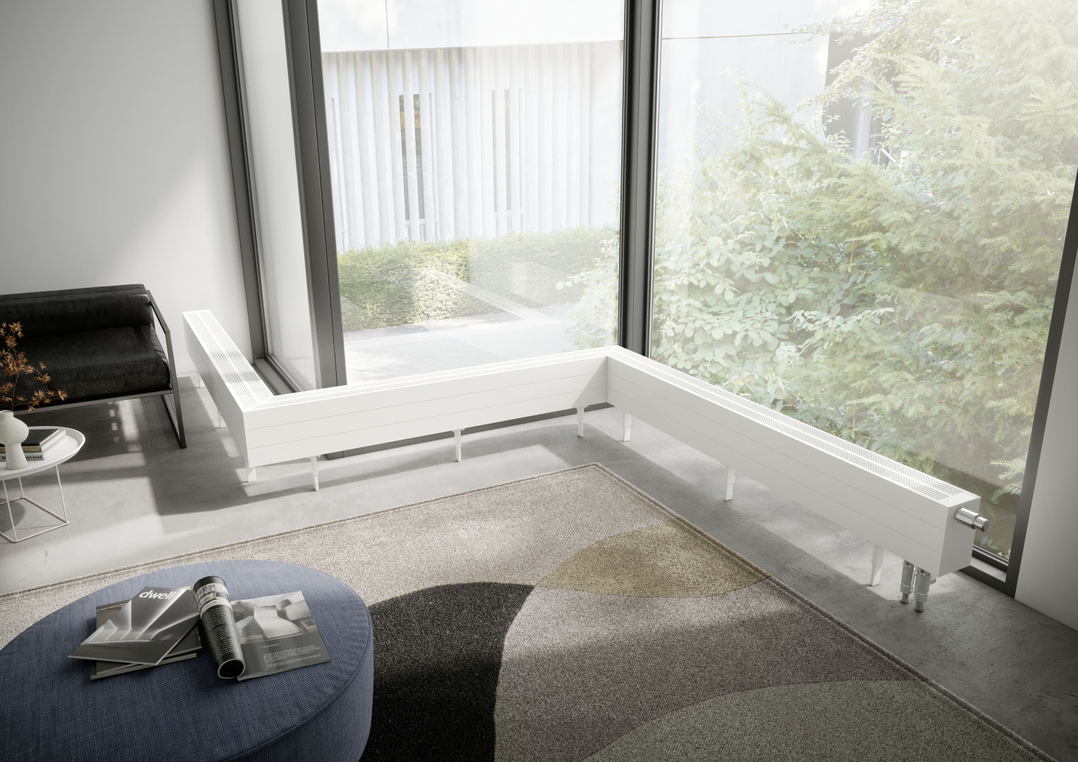 Typ KSV to elegancki konwektor zaworowy z wbudowanym ekranem przeciw wypromieniowaniu ciepła – skuteczny sposób na zminimalizowanie strat ciepła spowodowanych dużymi powierzchniami oszklonymi.