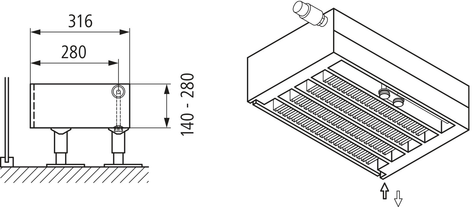 Konwektor Kermi V-Kon S Typ55 BH280x316x600mm QN1722, weiß, 6 bar, m. Abd., Vent. re