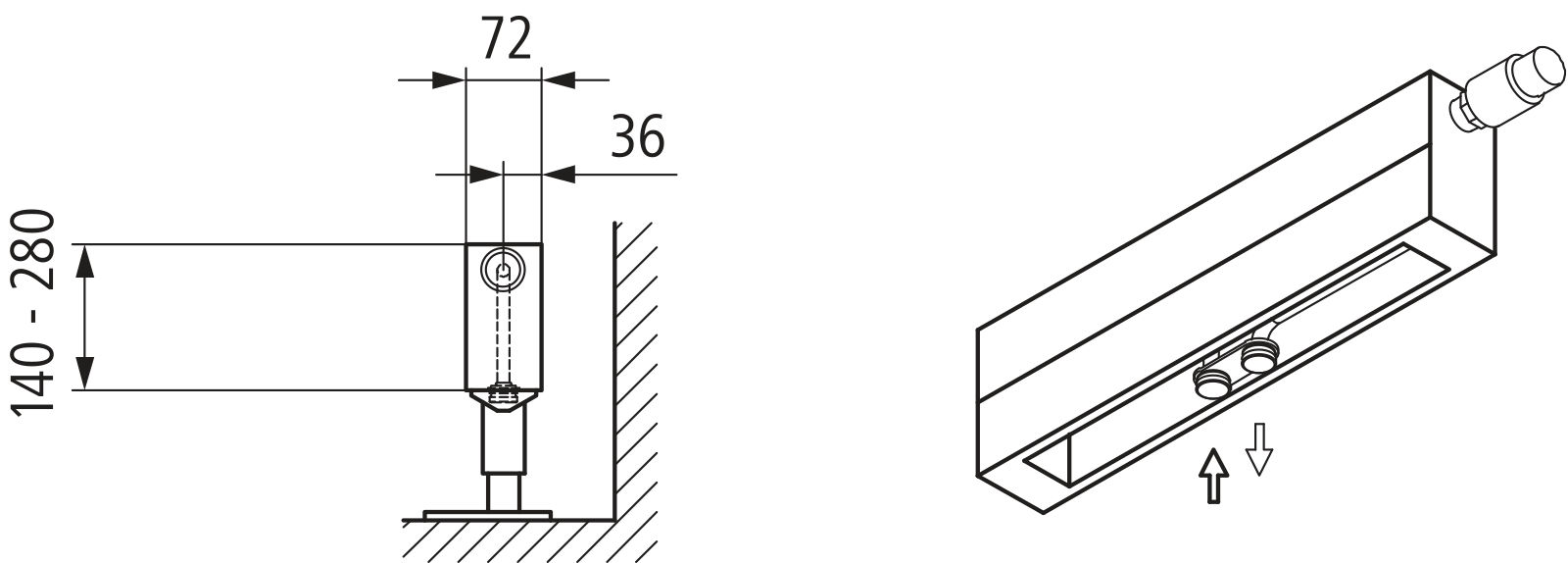 Konwektor zaworowy Kermi KNV. Z kompletną, zintegrowaną armaturą zaworową. Pomieszczenia o dużych powierzchniach przeszklonych wymagają szczególnych rozwiązań dotyczących ogrzewania. Konwektory zaworowe Kermi sprawdzają się tu idealnie. Eleganckie, niewielkich rozmiarów, o bardzo dużej mocy grzewczej – doskonale dopasowują się również do wystroju wnętrza. To znakomite połączenie atrakcyjnego wzornictwa i optymalnej możliwości regulacji mocy cieplnej. Dzięki zintegrowanej armaturze zaworowej przewody zasilania i powrotu nie przebiegają obok konwektora. Wpływa to pozytywnie na wygląd konwektora, pozwala także skrócić czas montażu.