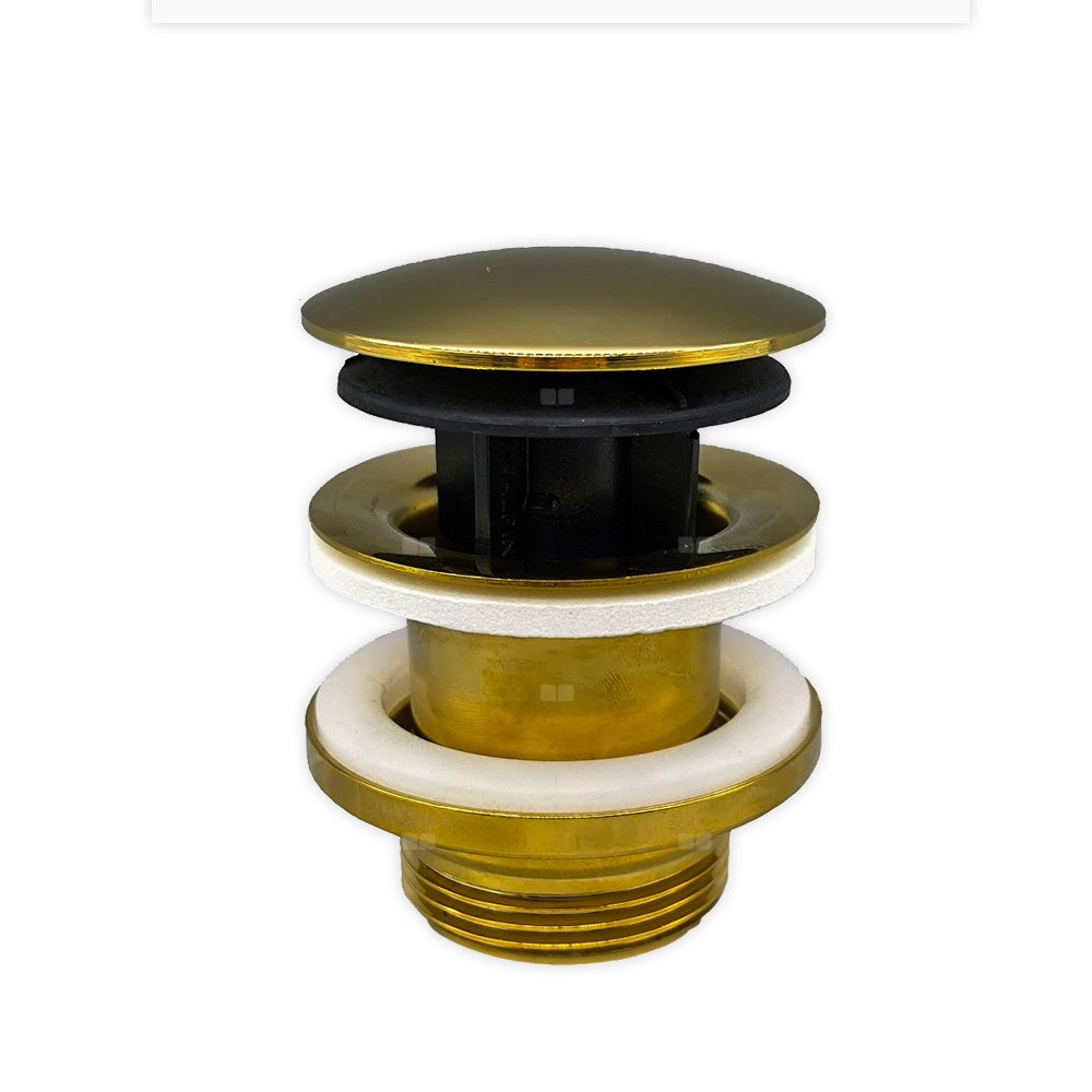 Spust umywalkowy klik-klak złoty CWP60-CB-GP-PVD (zwany także jako CWP60-GOLD-PVD) to elegancki i praktyczny element wykończeniowy do nowoczesnych łazienek. Wykonany z trwałego mosiądzu i pokryty chromowaną powłoką, zapewnia zarówno estetyczny wygląd, jak i odporność na korozję. Spust o rozmiarze 1.1/4″ wyposażony jest w mechanizm „klik-klak”, który umożliwia łatwe otwieranie i zamykanie odpływu poprzez naciśnięcie korka. Jego dekoracyjny korek podkreśla styl i nadaje umywalce nowoczesny charakter.