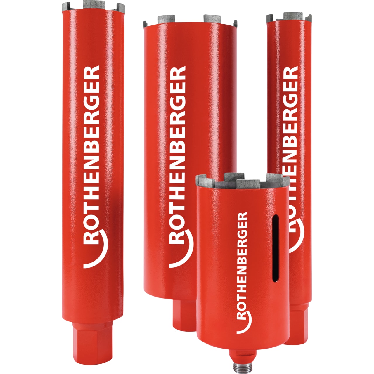 Łatwe wiercenie otworów w żelbecie, murze lub cegle piaskowo-wapiennej do głębokości 150 mm bez przedłużki, dzięki koronom DX High Speed Dry przy użyciu wiertnicy z ręki lub na statywie.