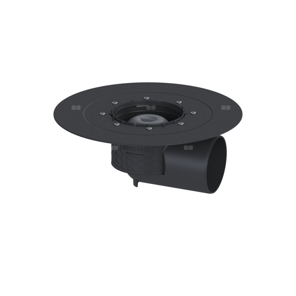 KESSEL Korpus Ecoguss, wielkość nominalna (DN) 100, króciec boczny, odwodnienie przez odpływ punktowy, syfonem w zestawie, zszczelnienie korpusie przez Kołnierz do uszczelnień klejonych (odpowiedni do barier przeciwwilgociowych)