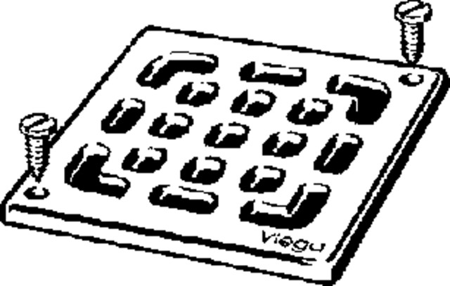Advantix-ruszt, stal nierdzewna 1.4404, wymiar systemowy 100, masywne wykonanie. Wyposażenie: Otwory na śruby, śruby. Dane techniczne: klasa obciążenia L=1500 kg, nr wzoru 4933.1, nr kat. 534 479, L: 94 B: 94 H: 5