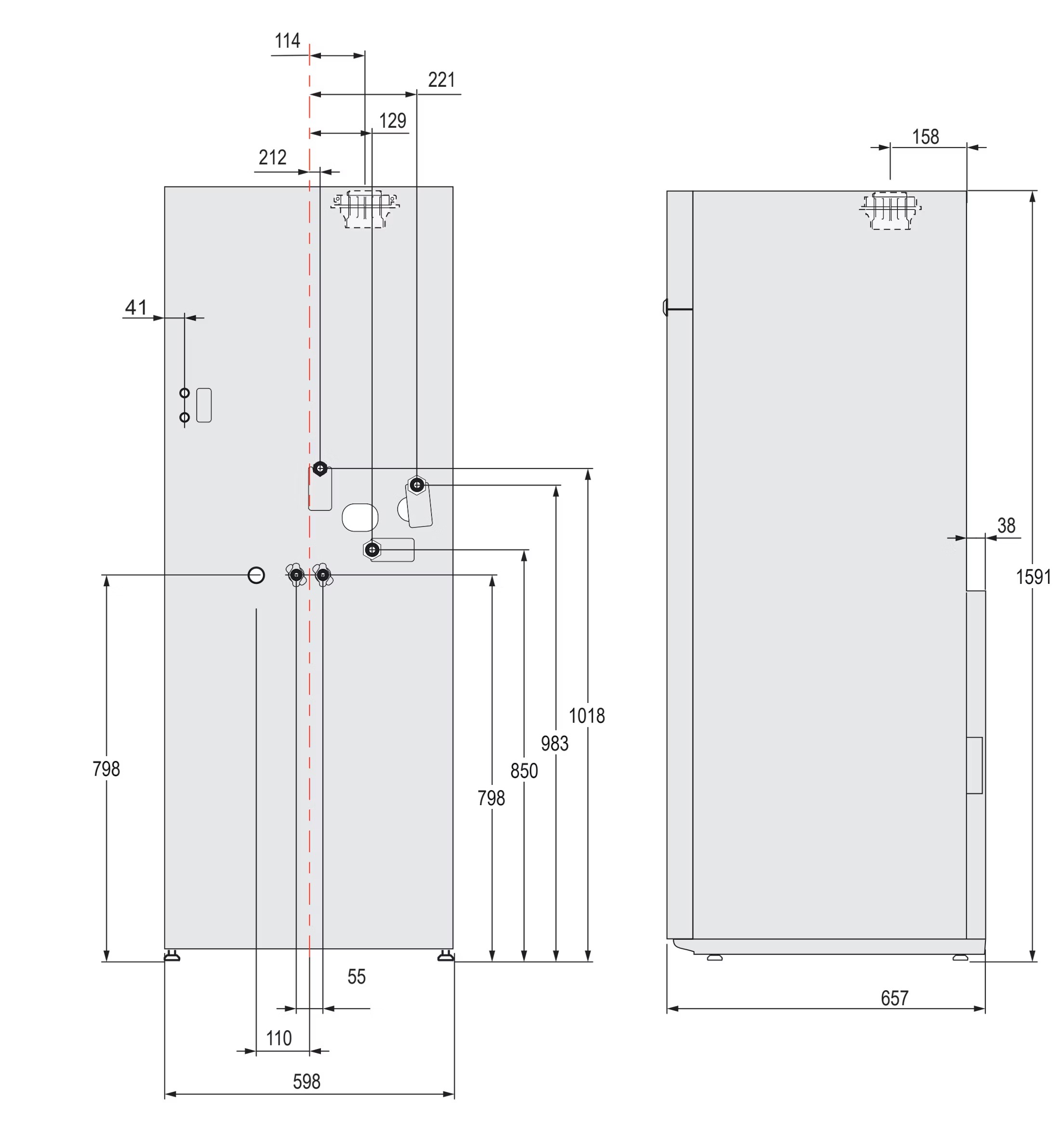 Kocioł kompaktowy: kocioł + kolano < 1,8 m do montażu w piwnicy