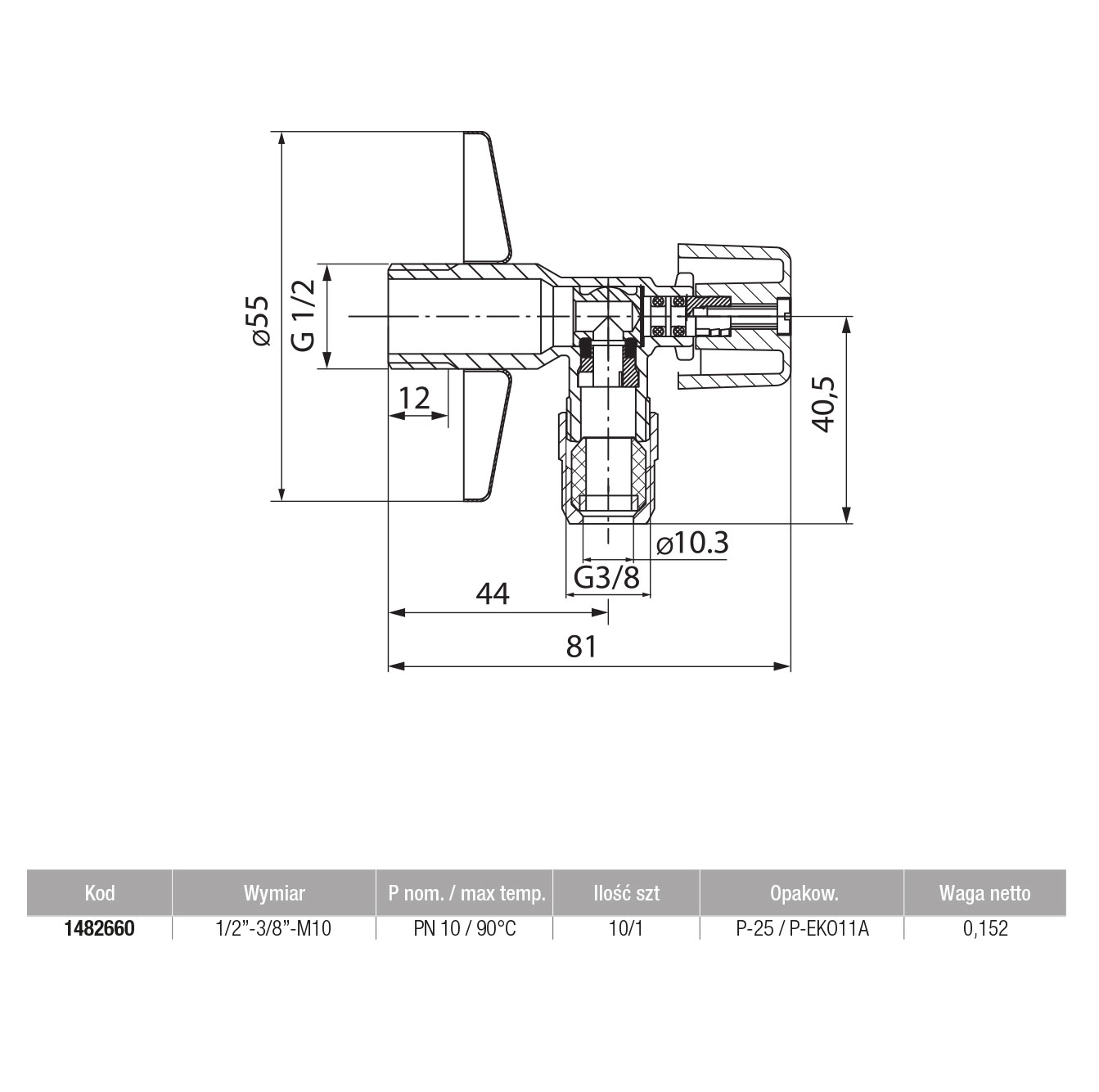 Kurek kątowy EKO PLUS z nakrętką 3/8 chrom 1/2-3/8