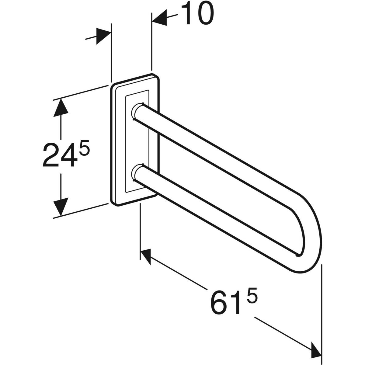 Średnica: ø 32 mm. Długość: 60 cm. Stal nierdzewna, powierzchnia gładka, wypolerowana. Mocowana na płytce 100 x 245 x 13,5 mm w kolorze antracytowym RAL7043 z otworami dla 6 śrub montażowych. Element zasłaniający śruby montażowe w kolorze chrom. Dopuszczalne maksymalne obciążenie: 120 kg.