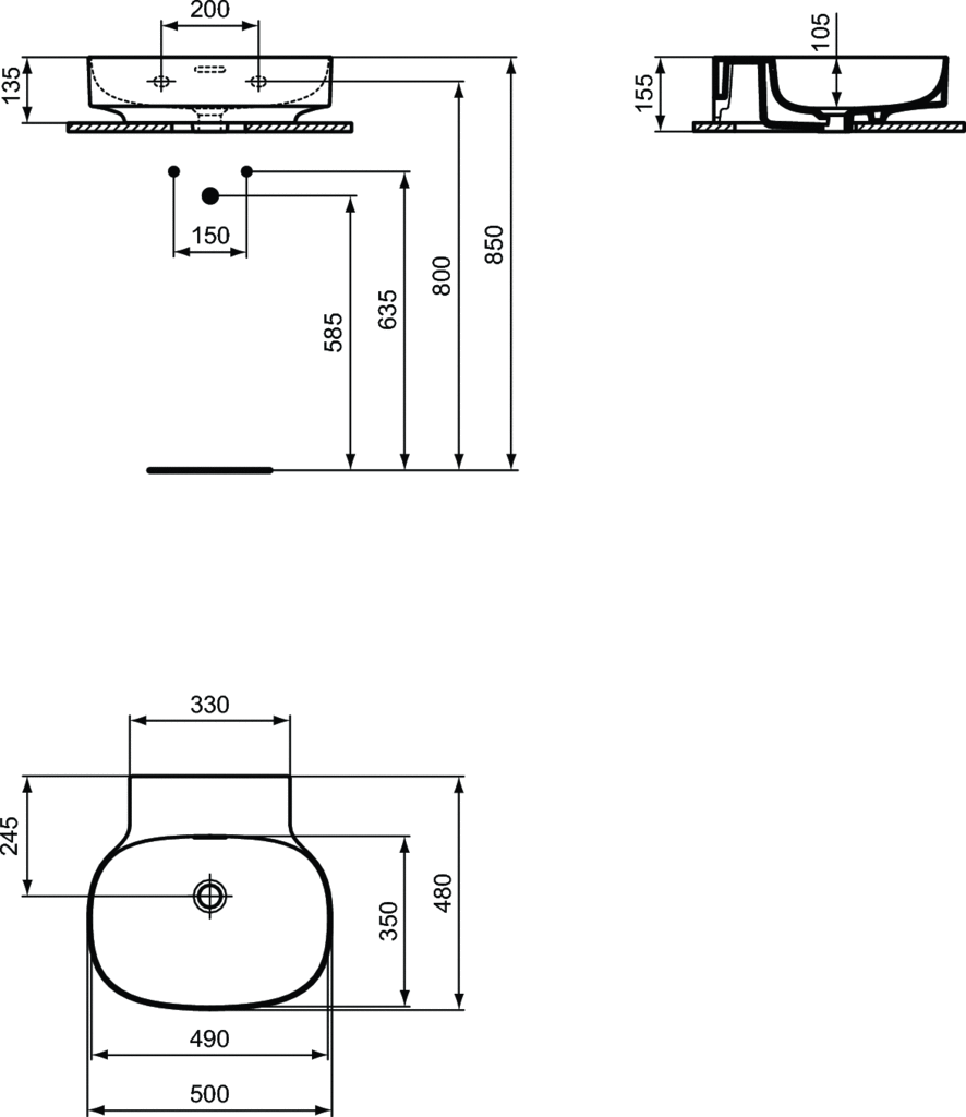 Umywalka Linda-X wisząca, nieszlifowana od spodu, do samodzielnego montażu. Bez wybitego otworu na baterię, z przelewem.