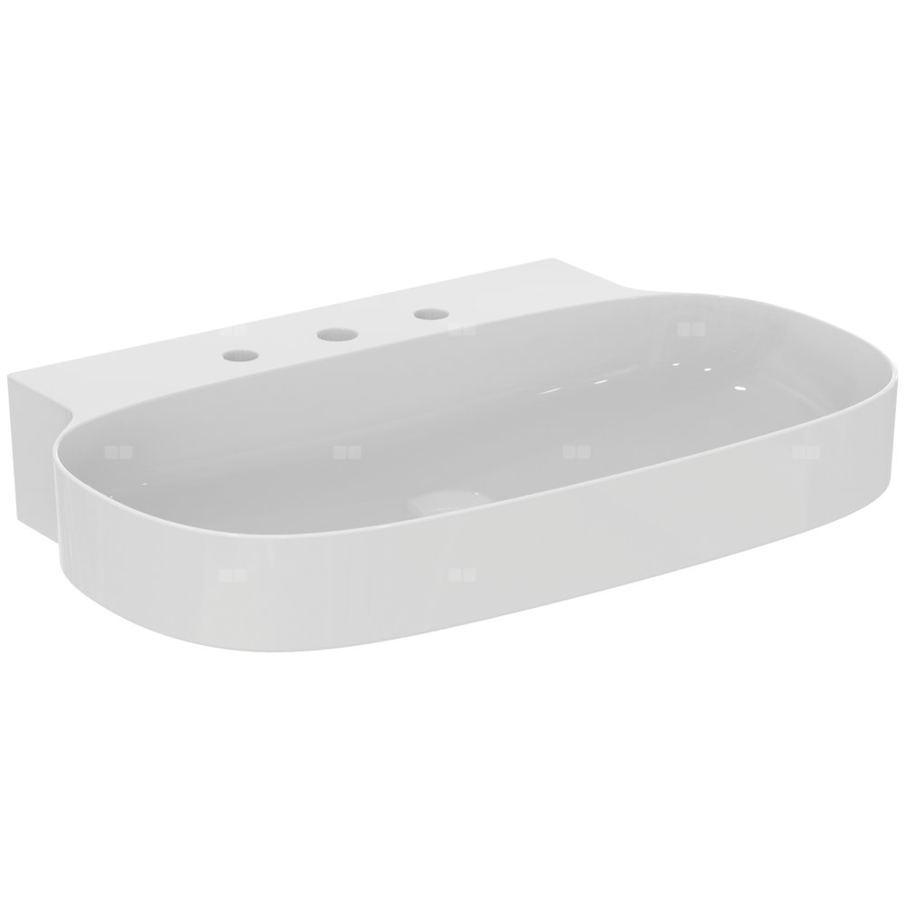 Umywalka Linda-X wisząca do montażu na meblach lub blacie (szlifowany spód). Z 3 wybitymi otworami na baterię, bez przelewu. W komplecie szablon do wycinania TT0299731.