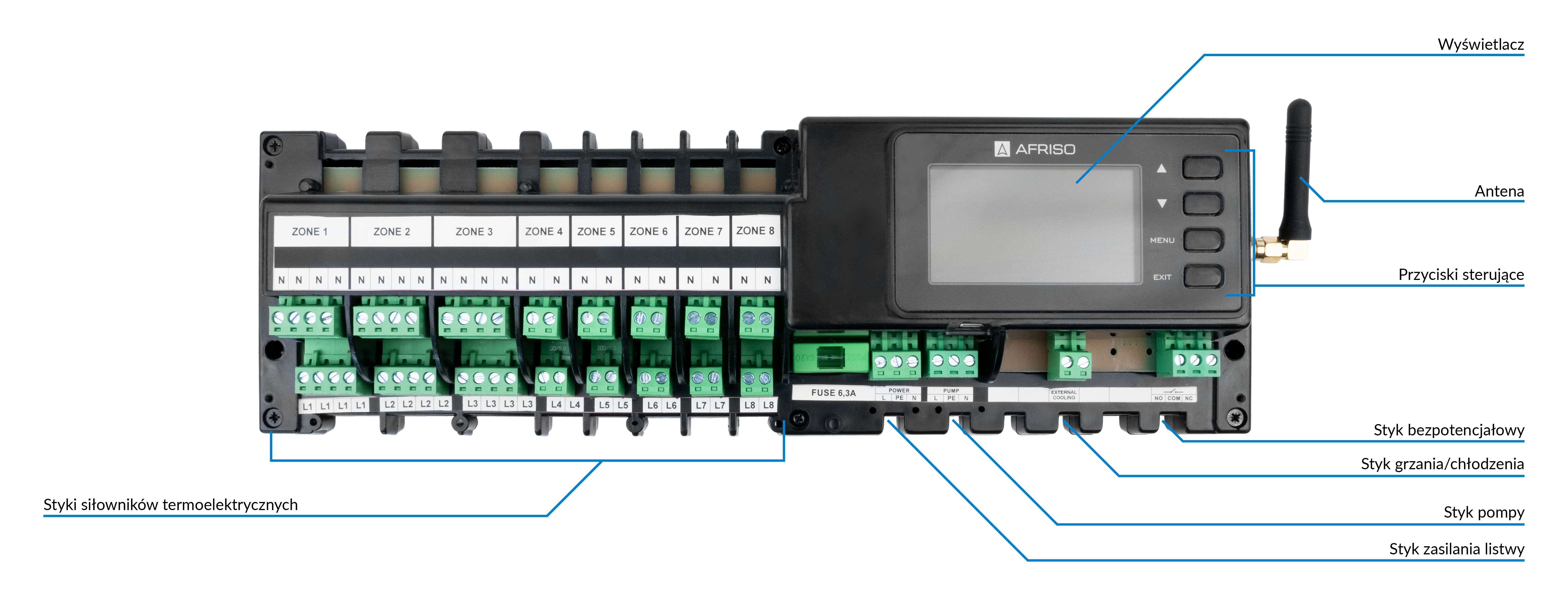 Umożliwa podłączenie do 22 siłowników termoelektrycznych.
