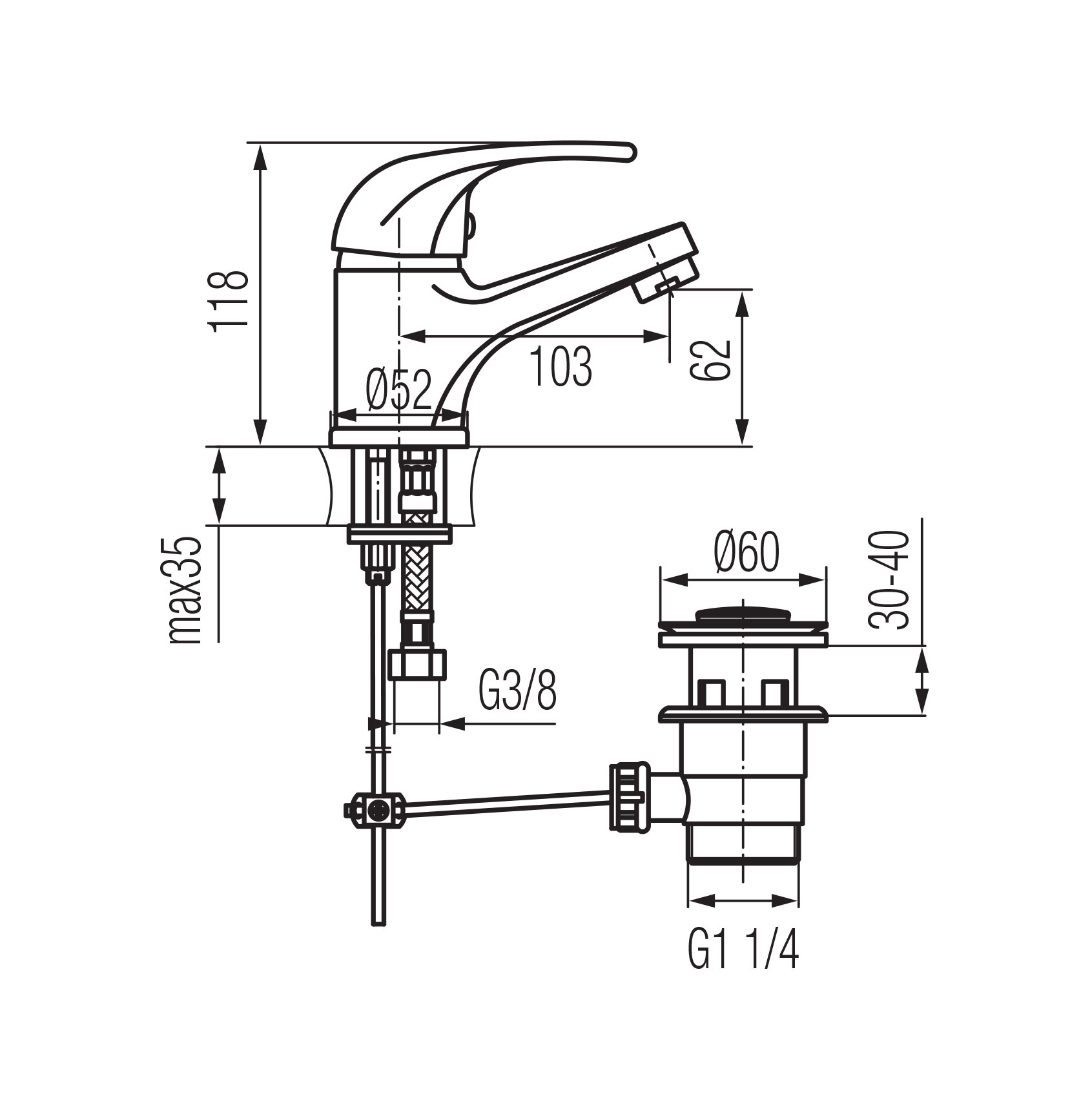 LOGIC ECO bateria umywalkowa stojąca ze sterowanym spustem, system anticalc