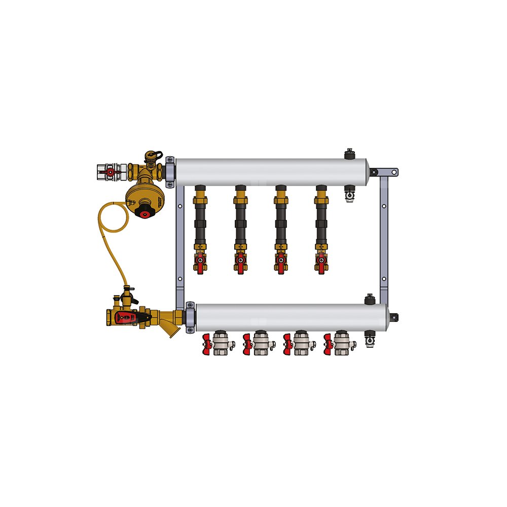 • Rozdzielacz DN 40, z izolacją, odpowietrznikiem i uchwytem montażowym