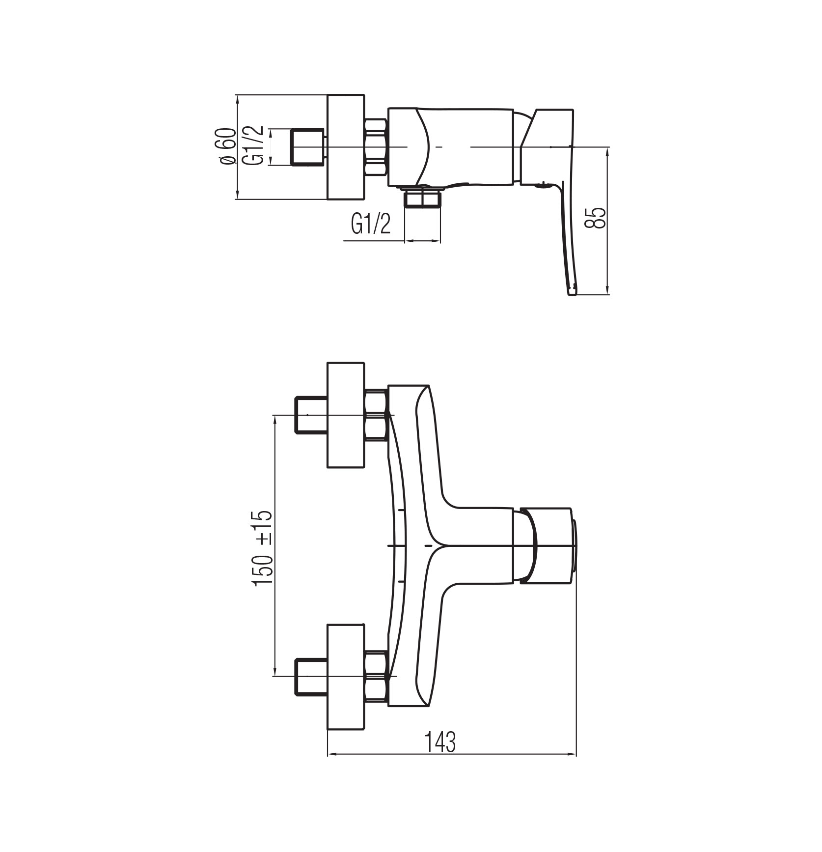 LORI Bateria natryskowa ścienna (bez akcesoriów)