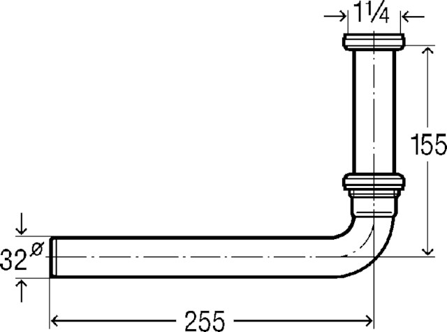 Łuk odpływowy 90°, mosiądz chrom., nr wzoru 5621.1-880, nr kat. 119 263, G: 1¼ DN: 32 L: 255