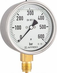 Manometr z rurką Bourdona AFRISO RF glicerynowy -1/0 bar G1/2B radialne fi 80 mm, kl. 1.6%