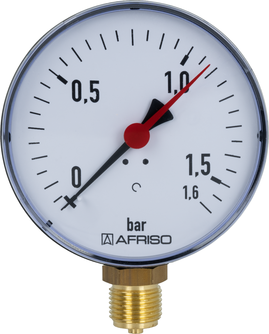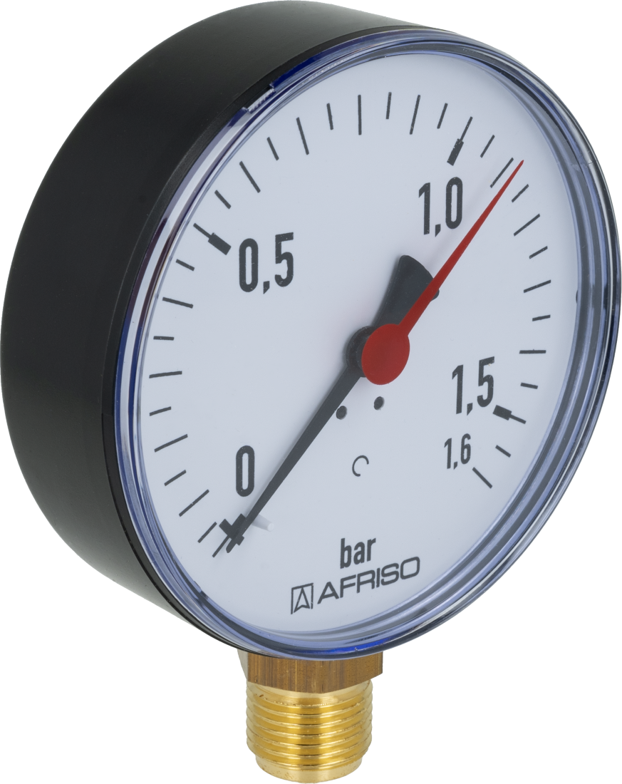 Manometr z rurką Bourdona AFRISO RF grzewczy 0/1,6 bar G1/2B radialne fi 100 mm, kl. 2.5%