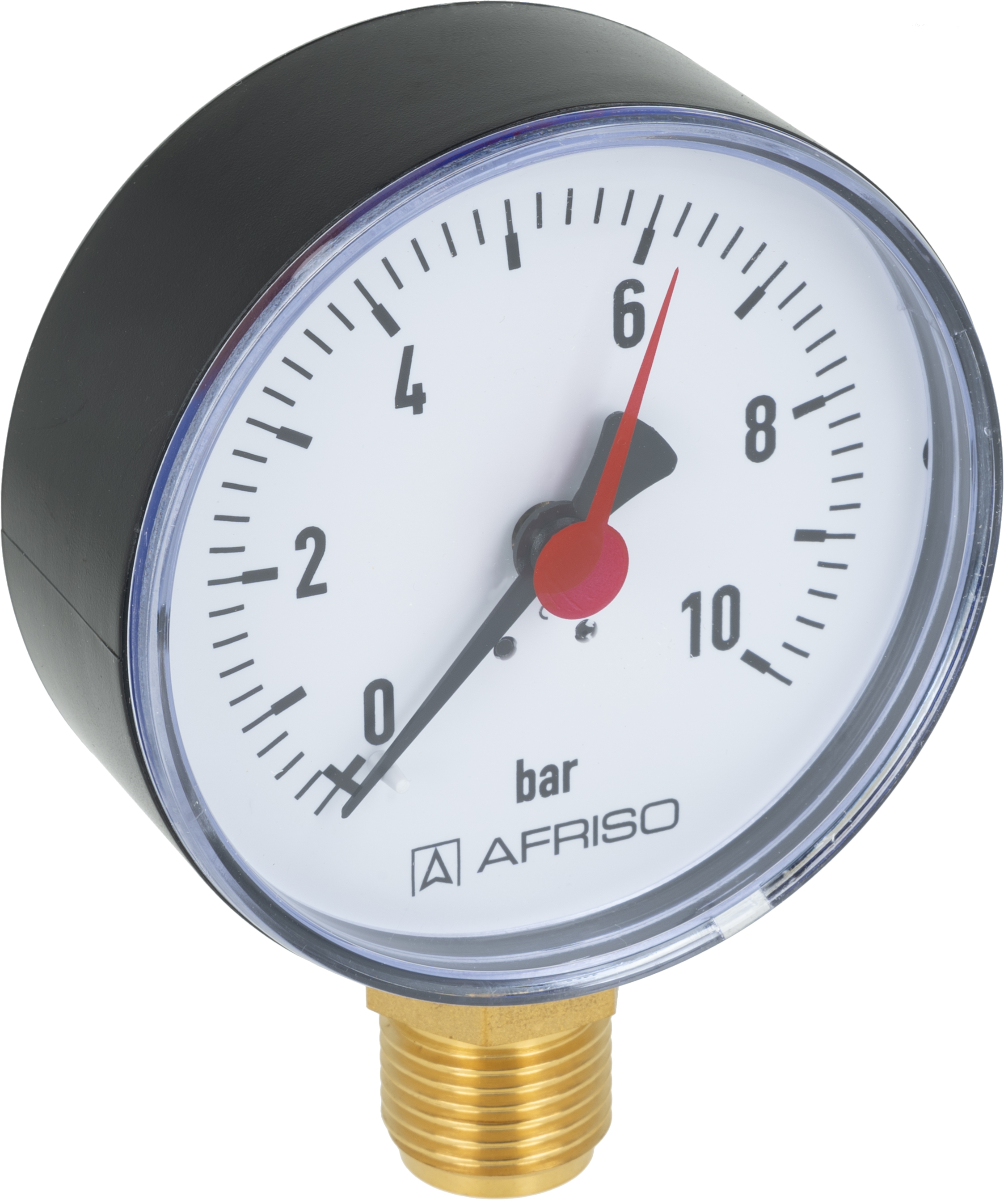 Manometr z rurką Bourdona AFRISO RF grzewczy 0/10 bar G1/2B radialne fi 80 mm, kl. 2.5%