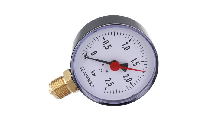 Manometr z rurką Bourdona AFRISO RF grzewczy 0/2,5 bar G1/2B radialne fi 80 mm, kl. 2.5%