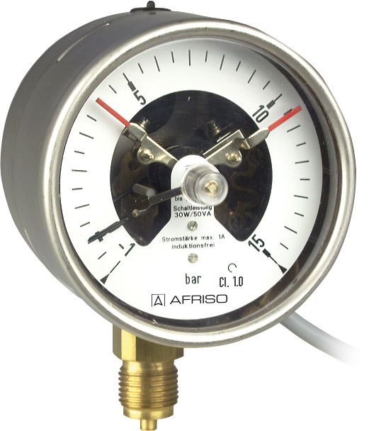 Manometry wyposażone w kontakty magnetyczne do sterowania zewnętrznymi urządzeniami elektrycznymi (włączania/wyłączania) po przekroczeniu ustawionego ciśnienia.