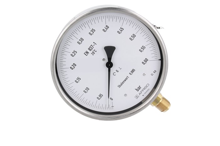 Manometr z rurką Bourdona AFRISO RF precyzyjny F 0/0,6 bar G1/2B radialne fi 160 mm, kl. 0.6%