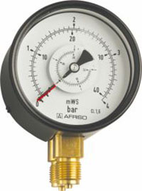 Manometr z rurką Bourdona AFRISO RF różnicy ciśnień 0/4 bar G1/2B radialne fi 100 mm, kl. 1.6%