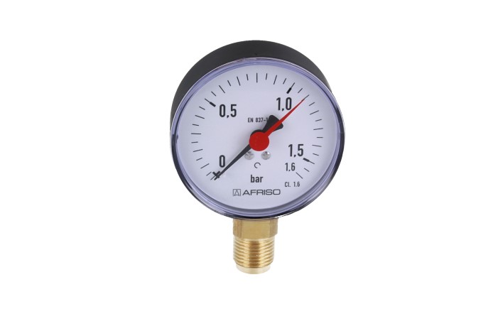 Manometr z rurką Bourdona AFRISO RF standardowy 0/1,6 bar G1/2B radialne fi 80 mm, kl. 1.6%