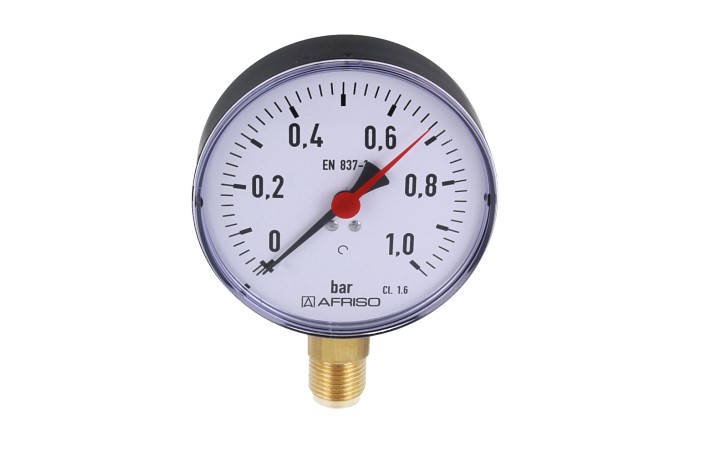 Manometr z rurką Bourdona AFRISO RF standardowy 0/1 bar G1/2B radialne fi 100 mm, kl. 1.6%