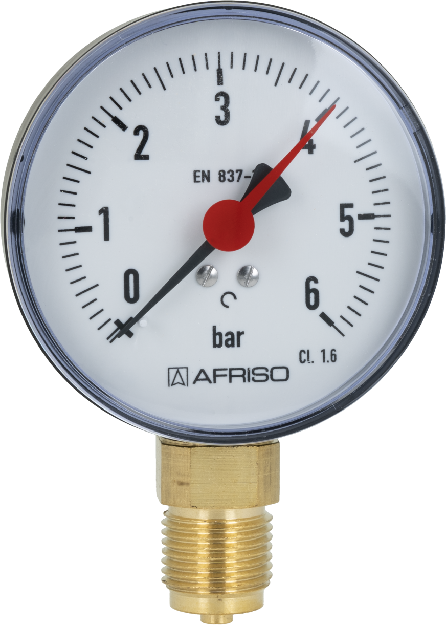 Manometr z rurką Bourdona AFRISO RF standardowy 0/6 bar G1/2B radialne fi 80 mm, kl. 1.6%