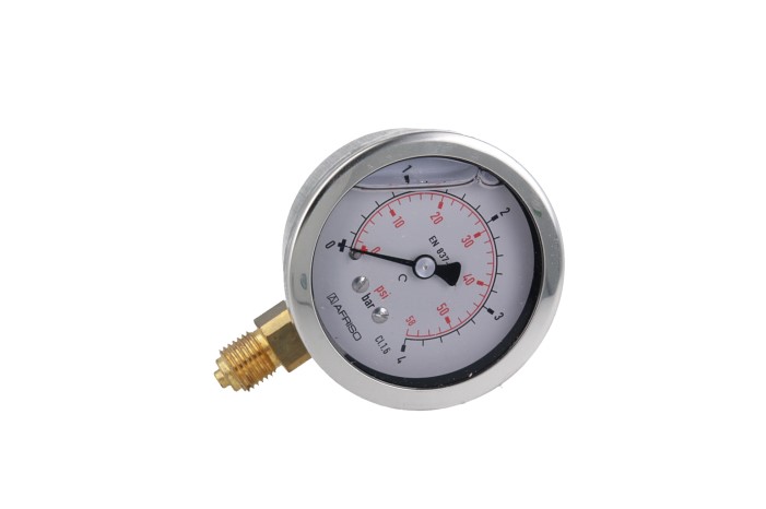 Manometr z rurką Bourdona AFRISO RF wstrząsoodporny 0/4 bar G1/4B radialne fi 63 mm, kl. 1.6%