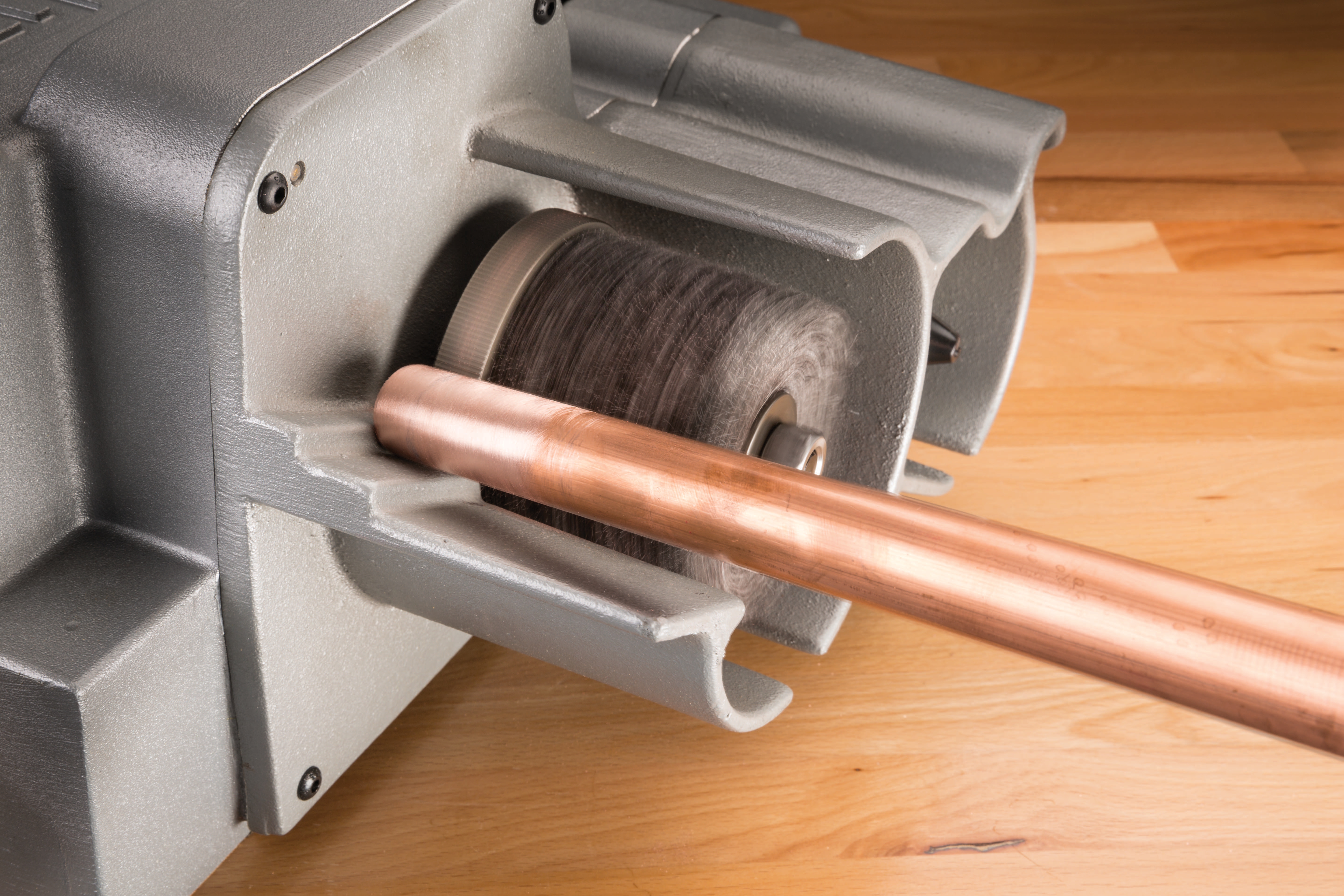Maszyna przeznaczona do szybkiego i profesjonalnego cięcia, czyszczenia, rozwiercania oraz usuwania zadziorów z rur i złączek z miedzi i ze stali nierdzewnej. Model 122 o masie zaledwie 23 kg, wyposażony w wygodny uchwyt, idealnie nadaje się do przenoszenia bezpośrednio na miejsce wykonywania pracy. Wytrzymała obudowa z aluminium odlewanego ciśnieniowo oraz mocny silnik indukcyjny 360 W zapewniają dużą trwałość. FUNKCJE: • Mocny silnik indukcyjny 230 V, 360 W, napędza rolki z prędkością obrotową 450 obr/min. • Wytrzymała szczotka do powierzchni zewnętrznych oczyszcza rury szybko i przy minimalnym zużyciu energii. • Rozwiertak rdzeniowy łatwo usuwa zadziory powodujące zawirowania przepływu. • Uchwyt do cięcia można dostosować do rurek o różnych rozmiarach. • Krążek obcinaka do miedzi wytrzymuje w testach ponad 10 000 cięć. • Rolki prowadzące zapewniają proste cięcie bez prowadzenia. • Duży uchwyt do przenoszenie ułatwia transport na miejsce pracy. • Wbudowany liniał przyrostowy 1⁄2" (12 mm) umożliwia szybki, łatwy pomiar. • W skład zestawu szczotek montażowych wchodzi sześć szczotek, stojak magazynowy i tuleja zaciskowa