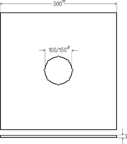 Mata uszczelniająca, guma / czarny, fi: 145 L: 500 B: 500