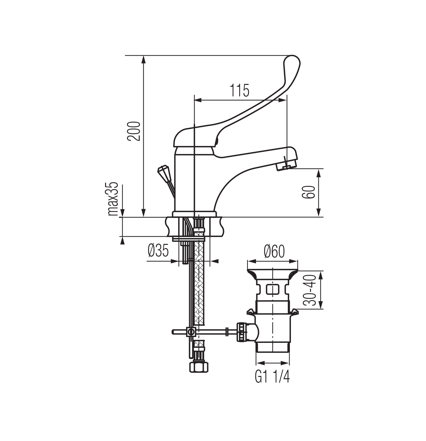 MEDICA Bateria umywalkowa stojąca ze spustem