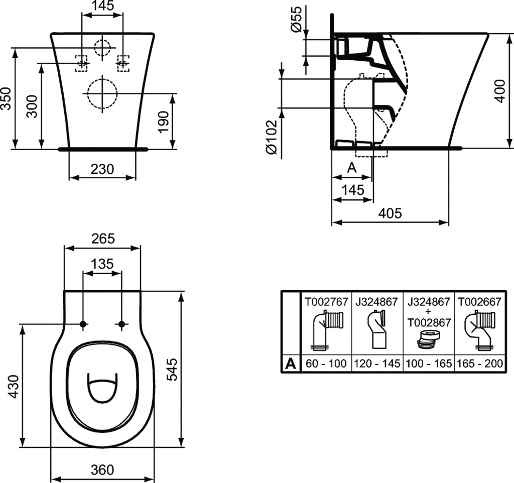 Miska przylegająca do ściany. Odpływ uniwersalny, poziomy. Zestaw montażowy TT0293851 w komplecie, system montażu, bez widocznych otworów przyłączeniowych. Indywidulane opakowanie. EN 997. Konieczne dodatkowe elementy: Deska sedesowa typu Thin, z duroplastu (E036501). Deska sedesowa typu Thin, z duroplastu, wolnoopadająca (E036601). Zalecane dodatkowe elementy: Kolano przyłączeniowe 90°, poziome, 60-150 mm (T002767). Kolano przyłączeniowe 90°, poziome, 175-205 mm (J324867). Kolano przyłączeniowe 90°, poziome, 165-210 mm (T002667). Element do odpływu +20 /-20 (do ew. zastosowania z kolanem przyłączeniowym 90° J324867, do uzyskania odleglości 155-225 mm) (T002867). Ogranicznik przepływ wodyu wody (do zastosowania w przypadku spłukiwania od 6 do 9 l) (WW965956).