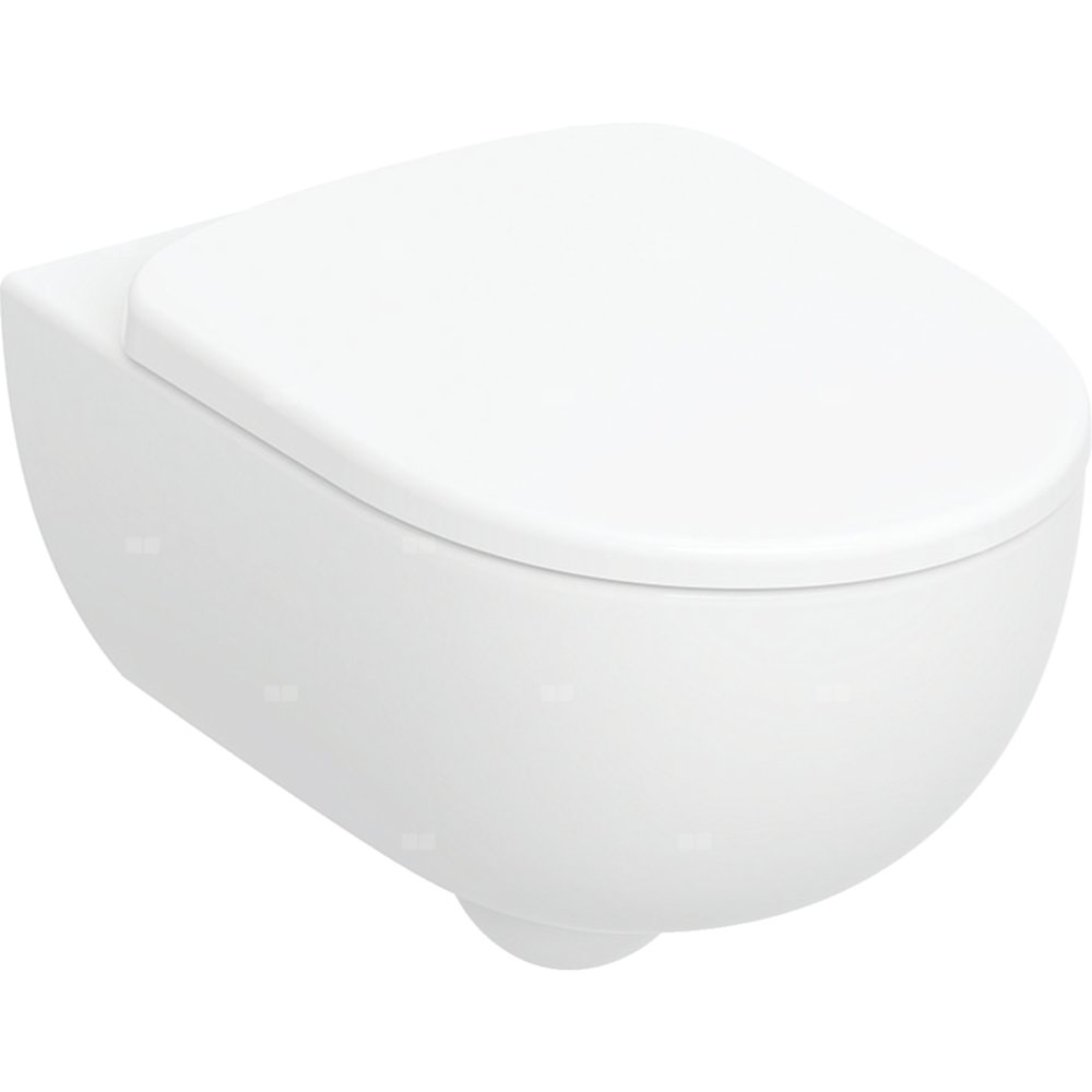 Zestaw wiszącej miski WC Geberit iCon, lejowa, ukryte mocowania, TurboFlush, z deską sedesową: T=53cm, Wolne opadanie=Tak, Zawiasy wypinane=Blokowane, Mocowanie=Od góry, Biały