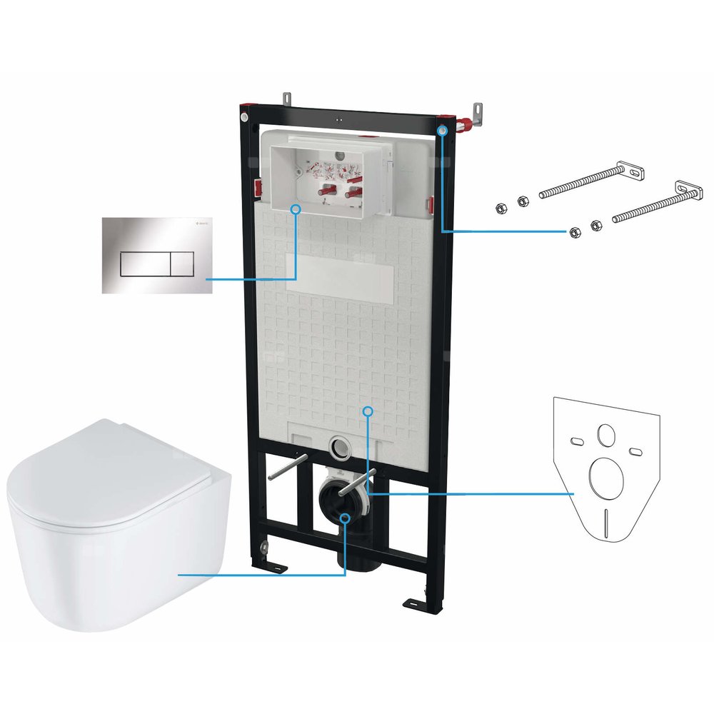 Miska wisząca jaśmin biała + deska + stelaż + przycisk chrom