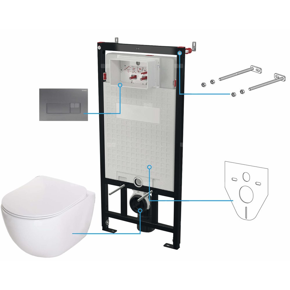 Zestaw WC z wiszącą miską pomyślany został z myślą o wysokiej estetyce pomieszczenia oraz łatwości sprzątania. Trwała ceramika wysokiej jakości nie pęka i nie zmienia koloru nawet po długim czasie użytkowania, co zostało potwierdzone badaniami Deante. Uniwersalny, klasyczny, biały kolor zestawu WC nadaje pomieszczeniu elegancji. Przystosowany do instalacji podtynkowych. Elegancko wykończony, ozdobi każdą łazienkę. Jest to kompletny zestaw 6 w 1, w skład którego wchodzi: stelaż podtynkowy, miska bezkołnierzowa WC, cicho opadająca deska, elegancki przycisk spłukujący, mata amortyzująca i śruby montażowe.