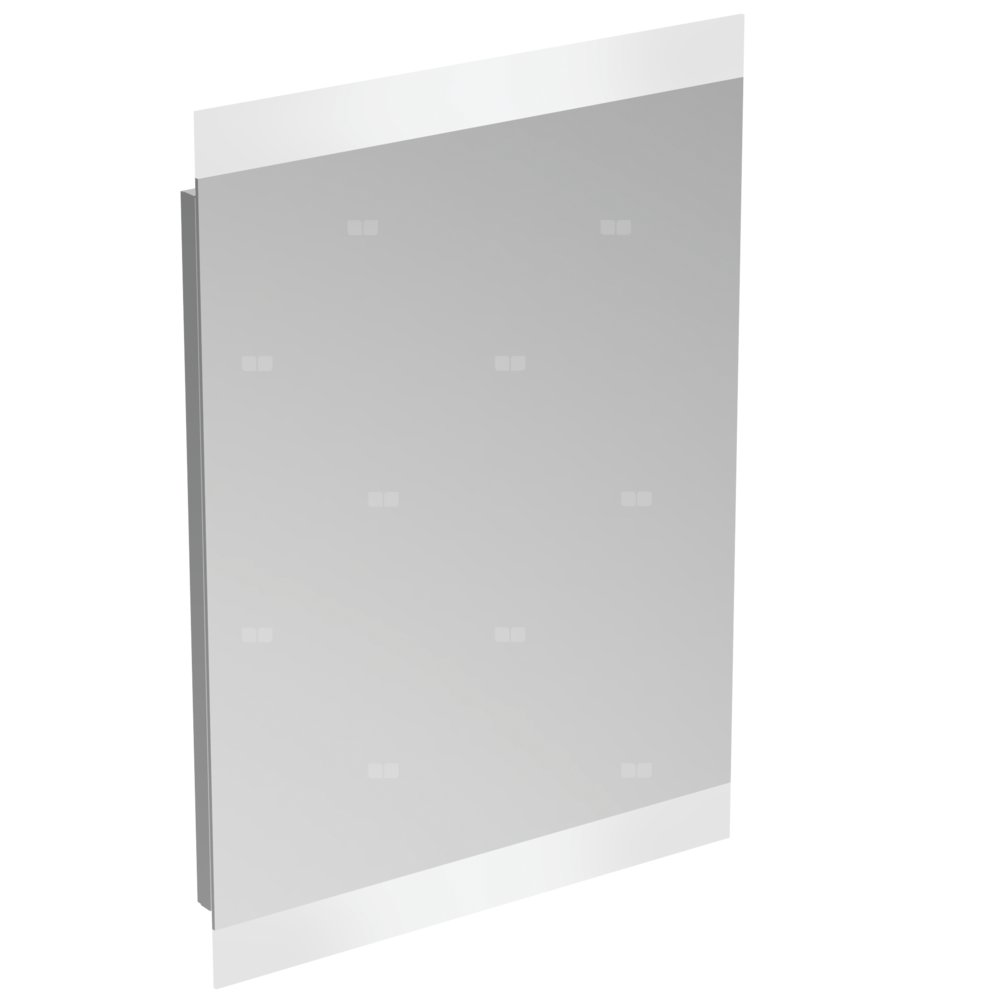 Lustro z oświetleniem High 50x70 cm. Odwracalne. Z systemem zapobiegającym parowaniu i ramą: mniejszą niż lustro. Oświetlenie LED: górne i dolne (dla umywalki). Włącznik do czujnika światła ze ściemniaczem i antyparą. Parametry: 220-240 V, 50-60 Hz, IP44, klasa II. Zestaw montażowy w komplecie.