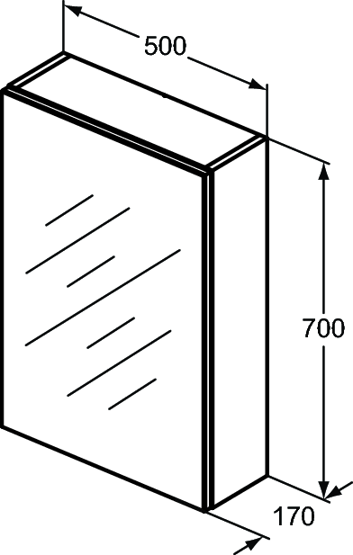 Szafka z lustrem Mid 50x70 cm, 1-stronne lustrzane drzwi z systemem soft close. Wbudowane dolne oświetlenie LED dla umywalki. Wewnętrzne lustro kosmetyczne, samoprzylepny metalowy uchwyt, włącznik, gniazdo golarki, regulowana szklana półka. Parametry: 220-240 V, 50-60 Hz, IP44, klasa II. Zestaw montażowy w komplecie.