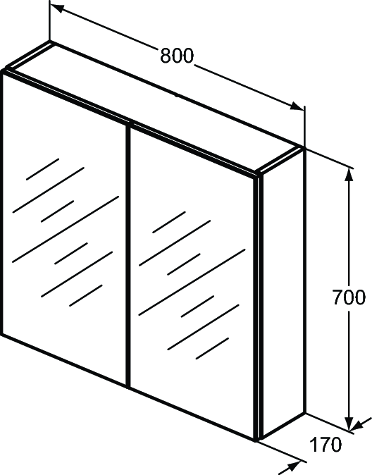 Szafka z lustrem Mid 80x70 cm, 2 drzwi, 1-stronne lustrzane drzwi z systemem soft close. Wbudowane dolne oświetlenie LED dla umywalki. Wewnętrzne lustro kosmetyczne, samoprzylepny metalowy uchwyt, włącznik, gniazdo golarki, regulowana szklana półka. Parametry: 220-240 V, 50-60 Hz, IP44, klasa II. Zestaw montażowy w komplecie.