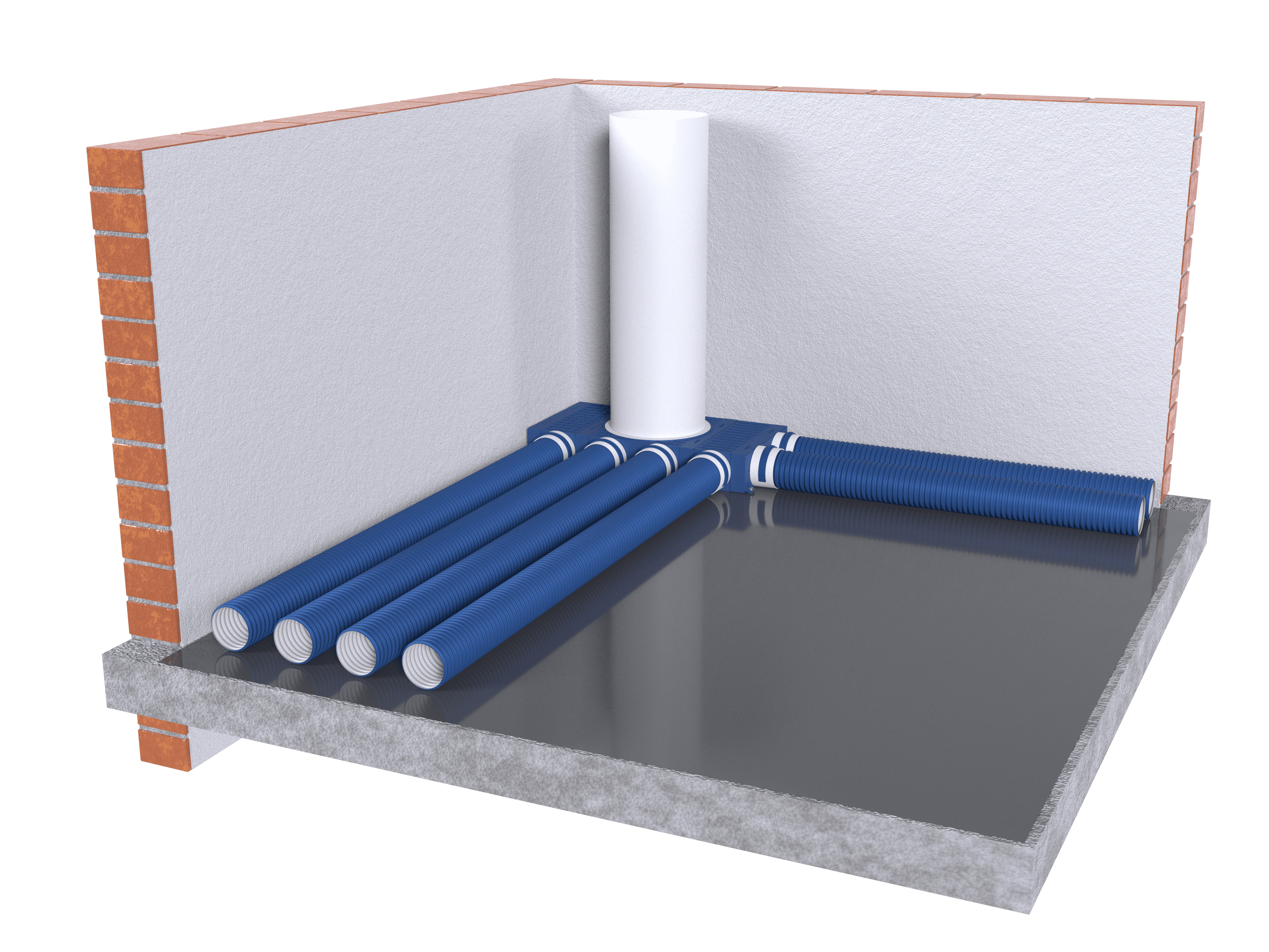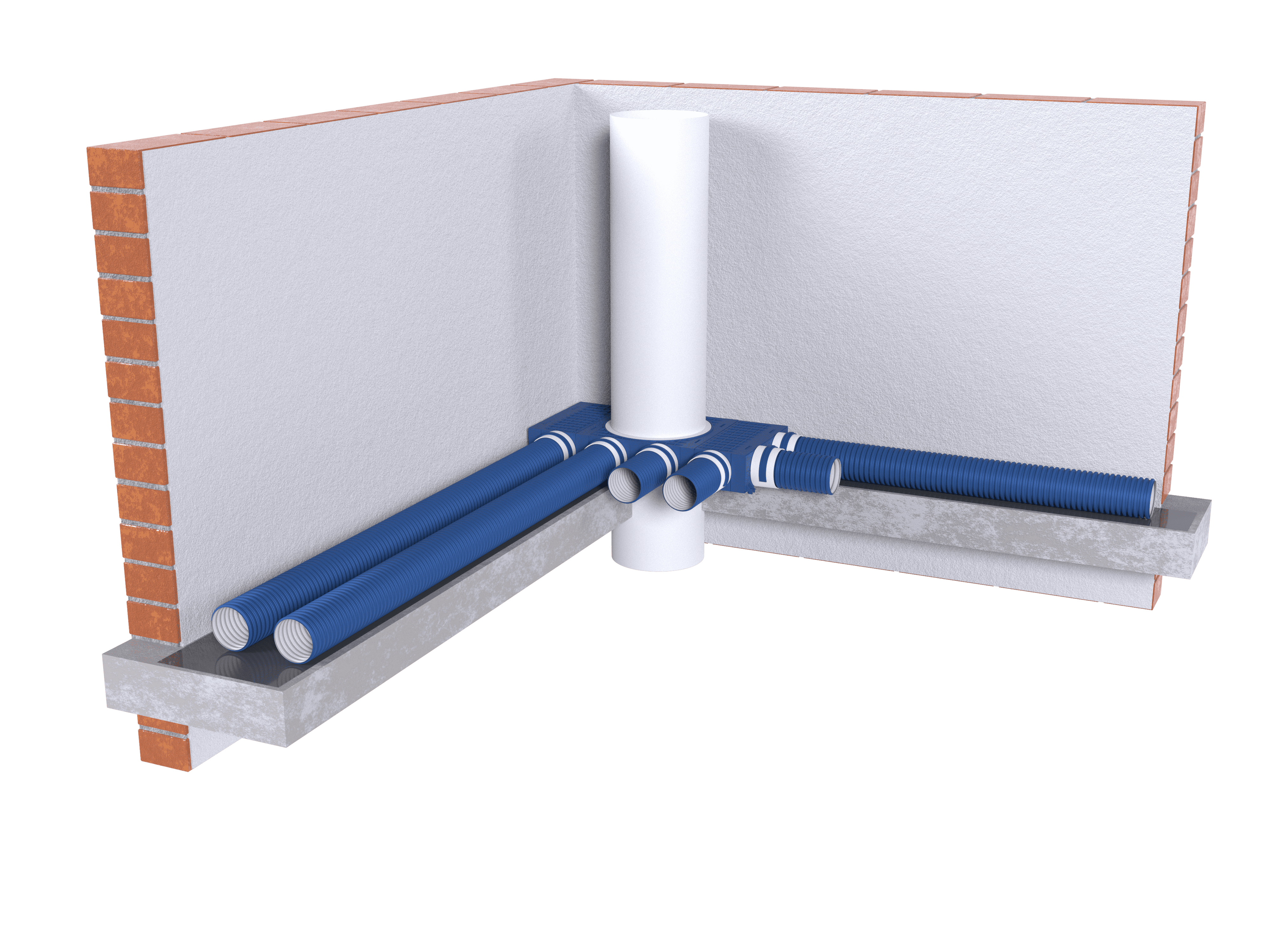 Moduł bazowy przelotowy (MPBVT+75) to nowa kształtka wchodząca w skład systemu VENTIFLEX PLUS, dzięki której można zbudować przelotowy rozdzielacz.
