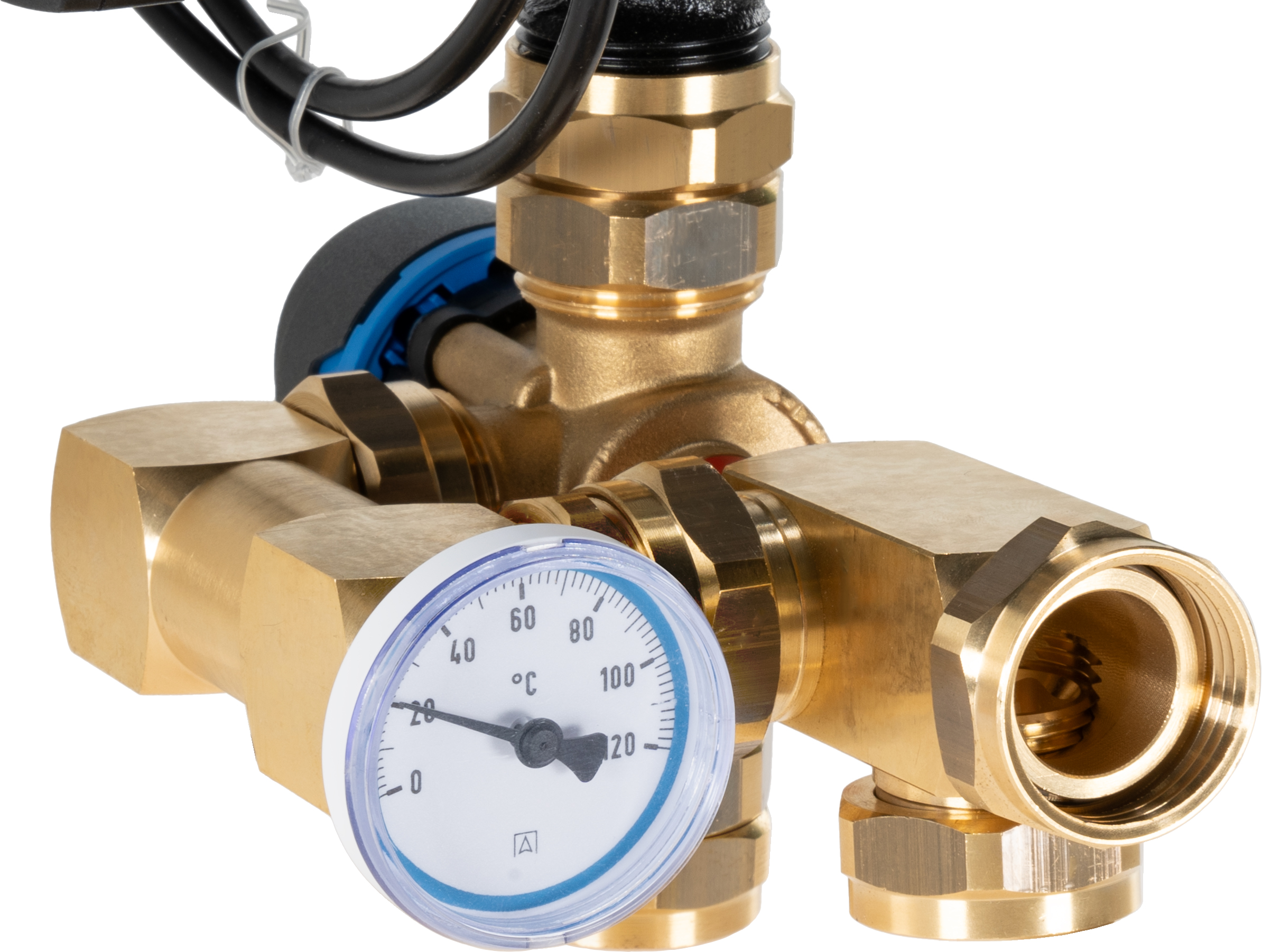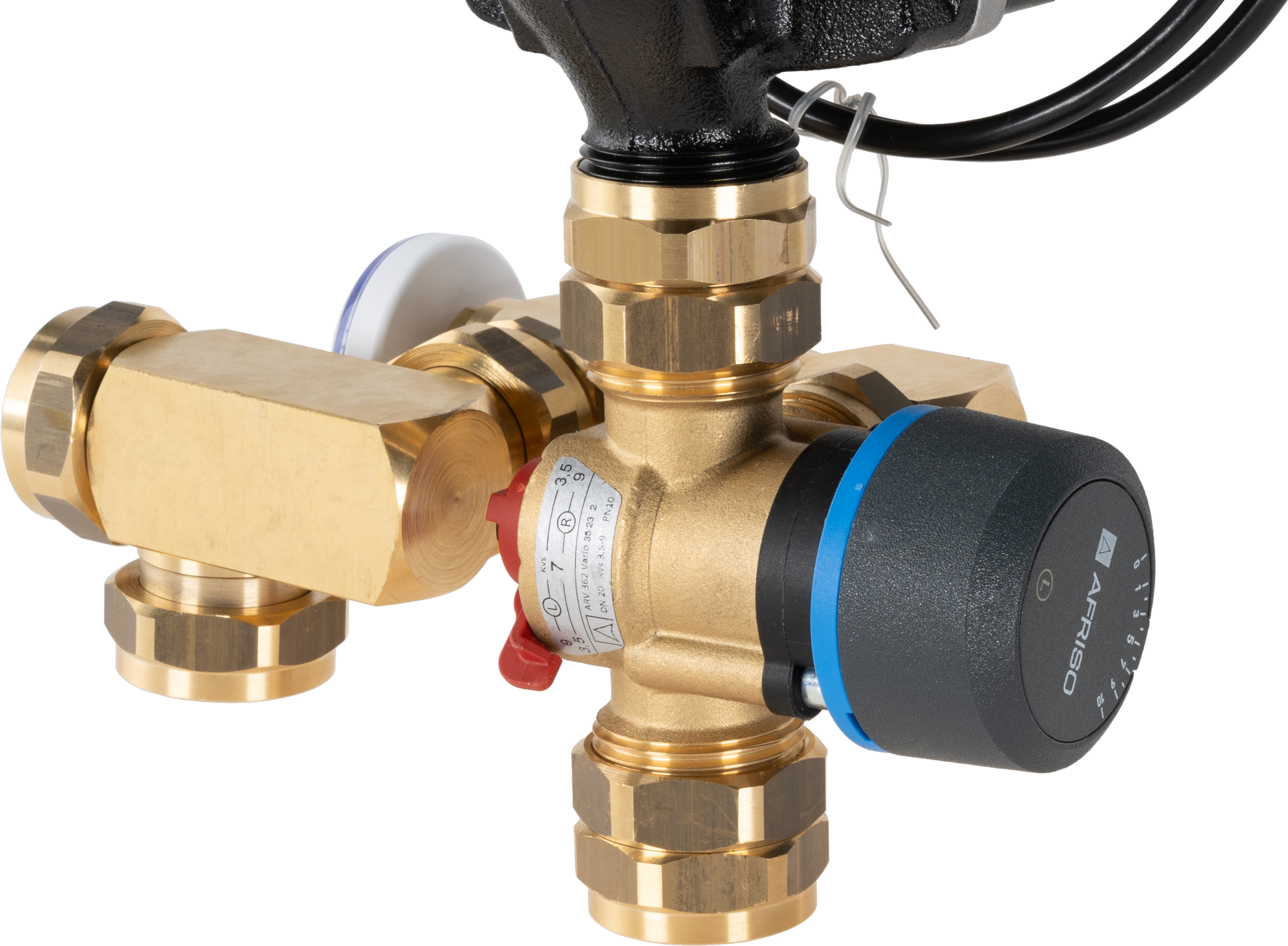 Zamontowanie na zaworze mieszającym siłownika ARM ProClick i podłączenie go do regulatora BWC 310 umożliwia automatyczną zmianę temperatury zasilającej w zależności od temperatury zewnętrznej.