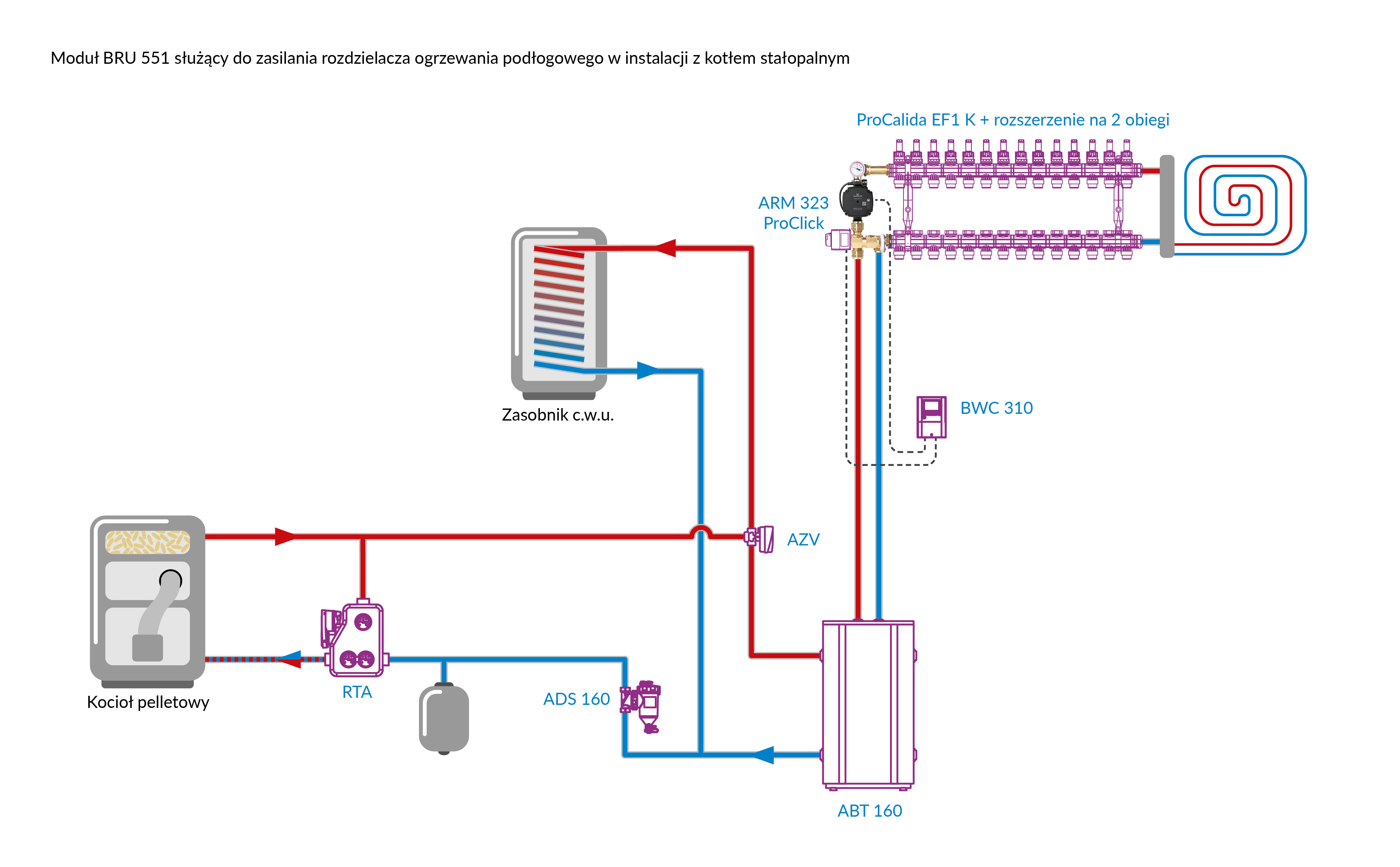 Moduł mieszający BRU 551 do ogrzewania podłogowego z zaworem ARV 362 Vario ProClick