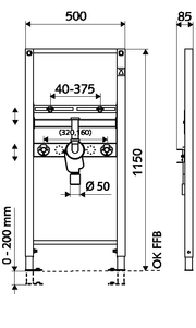 Poprzeczka do montażu umywalki 40 - 375 mm, regulowana na wysokość