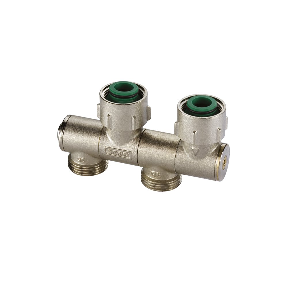 Moduł przyłączeniowy prosty kątowy FLAMCO MEIBES mosiądz (niklowanie) 1/2'' GZ x 3/4'' Eurokonus, rozstaw 50 mm do grzejników