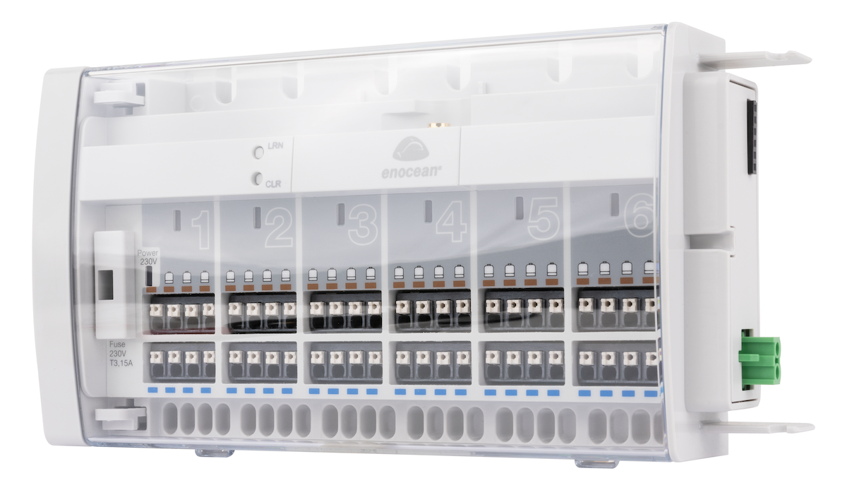 Pozwala sparować do 6 termostatów bezprzewodowych R FT / R FTF i podłączyć do 24 siłowników termoelektrycznych (np. TSA 01).