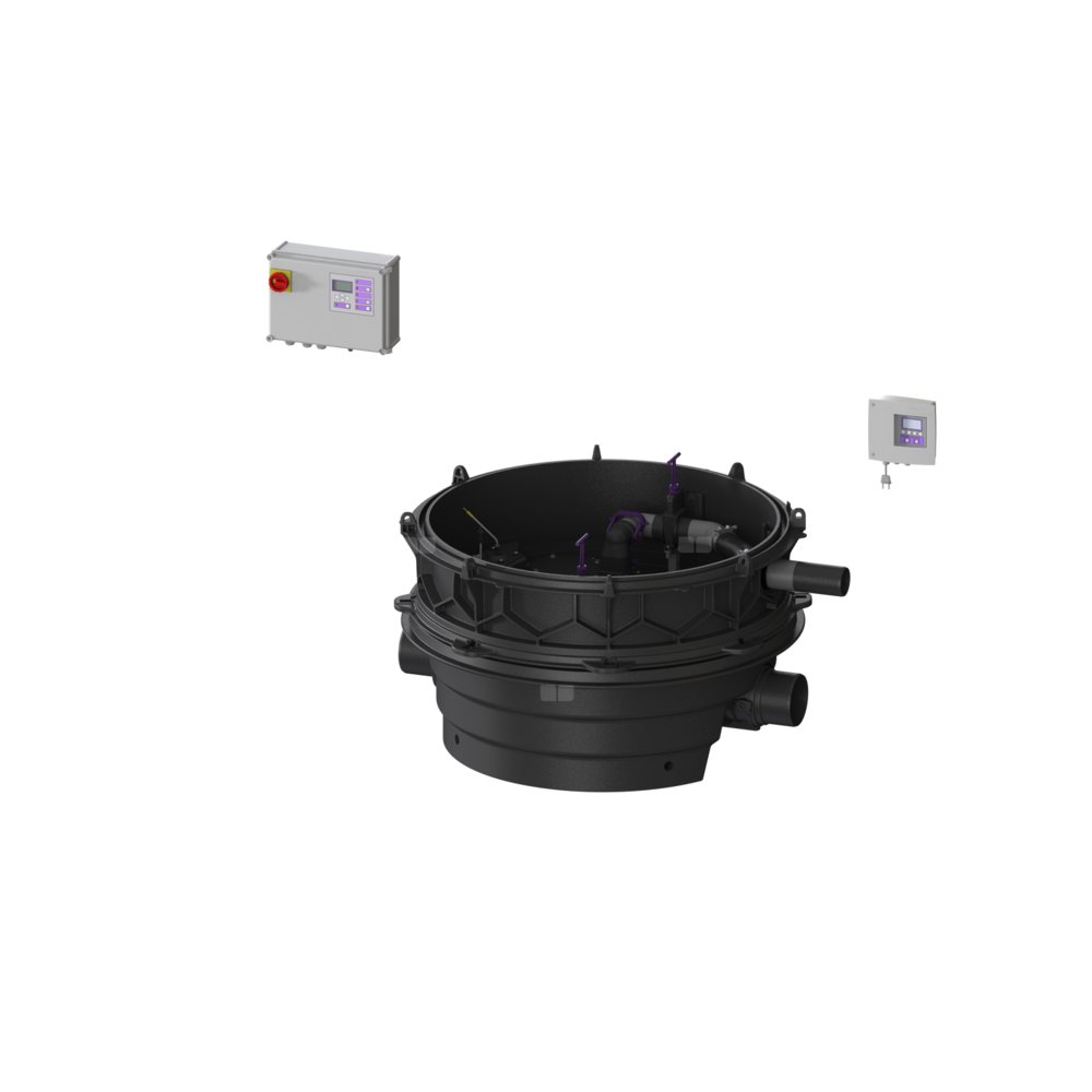 KESSEL Przepompownia przeciw. Ecolift XL, ścieków Ścieki zawierające fekalia i bez fekaliów, ustawienie swobodne, Pojedyncza jednostka, z pompą zatapialną SPF 3000, czujnik alarmu z Sonda optyczna, sterownik Comfort Plus z redundancją, Wariant z pogłębioną zabudową