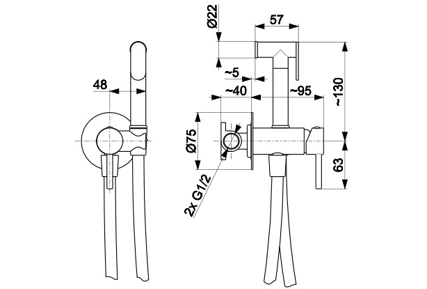 Bateria moza bidetowa podtynkowa ścienna, brushed gold