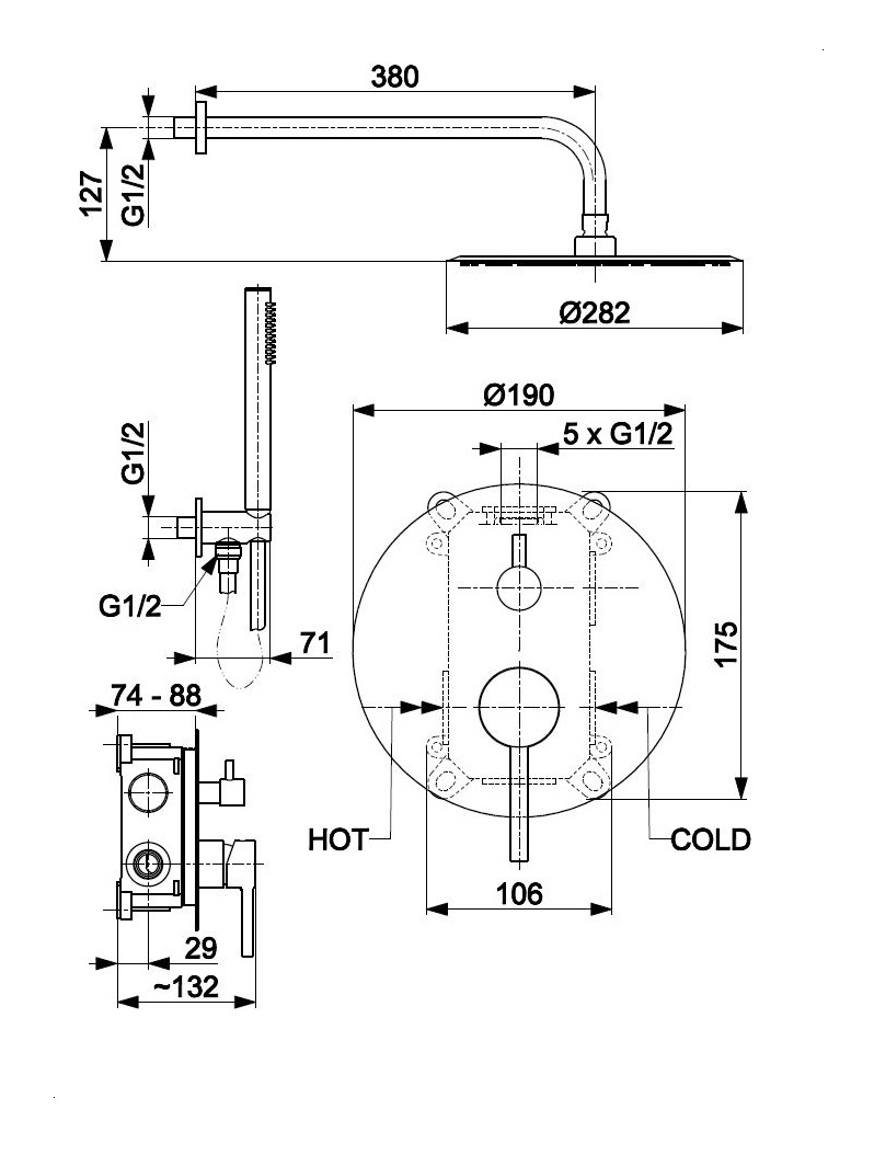 • Ilość strumieni rączki natrysku: 1
